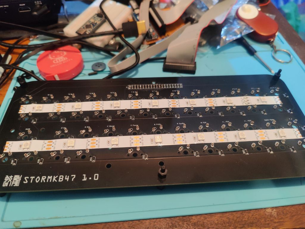 I also ordered a string of WS2812B LEDs to add backlighting to the keyboard. This proved fairly trivial to do.
