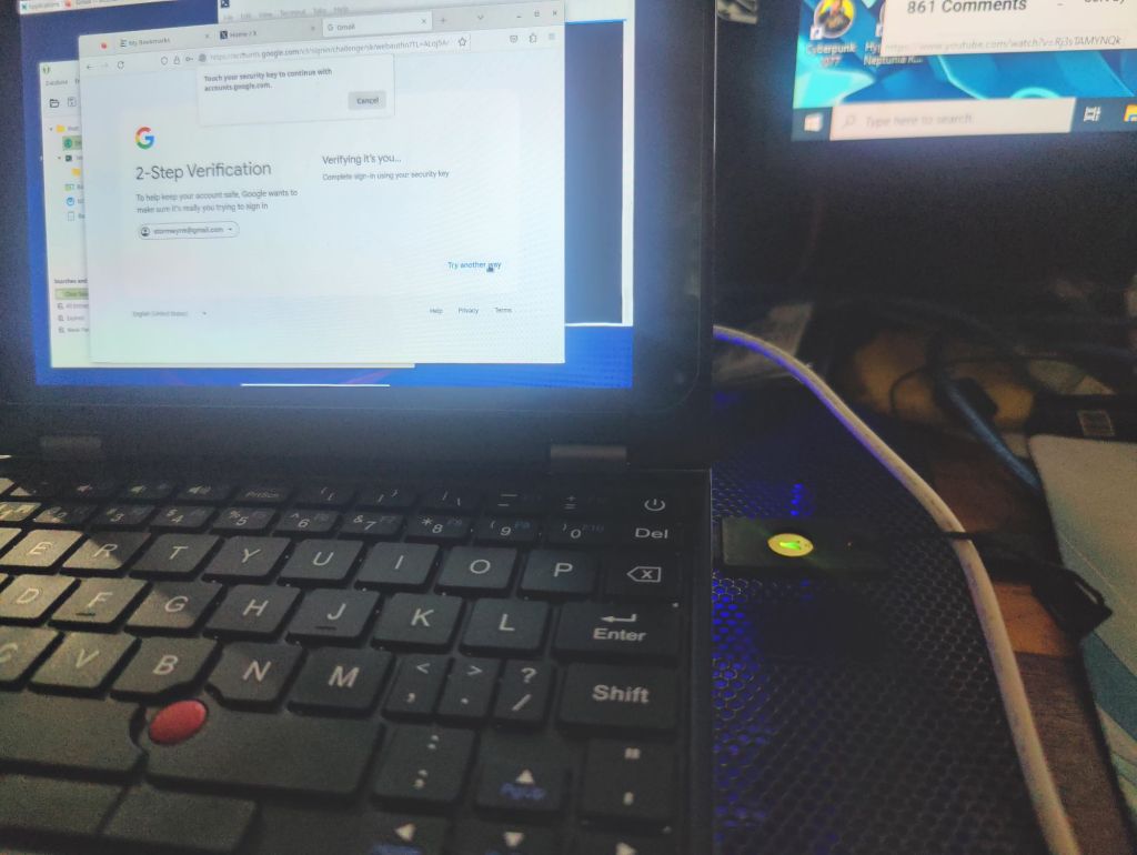 After a few failures that necessitated tedious kernel swapping I managed to build a working kernel with CONFIG_HIDRAW enabled. So now, it is possible to use a FIDO2 key like my Yubikey pictured above so that it can be used to do 2FA. I more or less followed the instructions for kernel build provided by Sipeed, and now I can use FIDO2 keys properly.