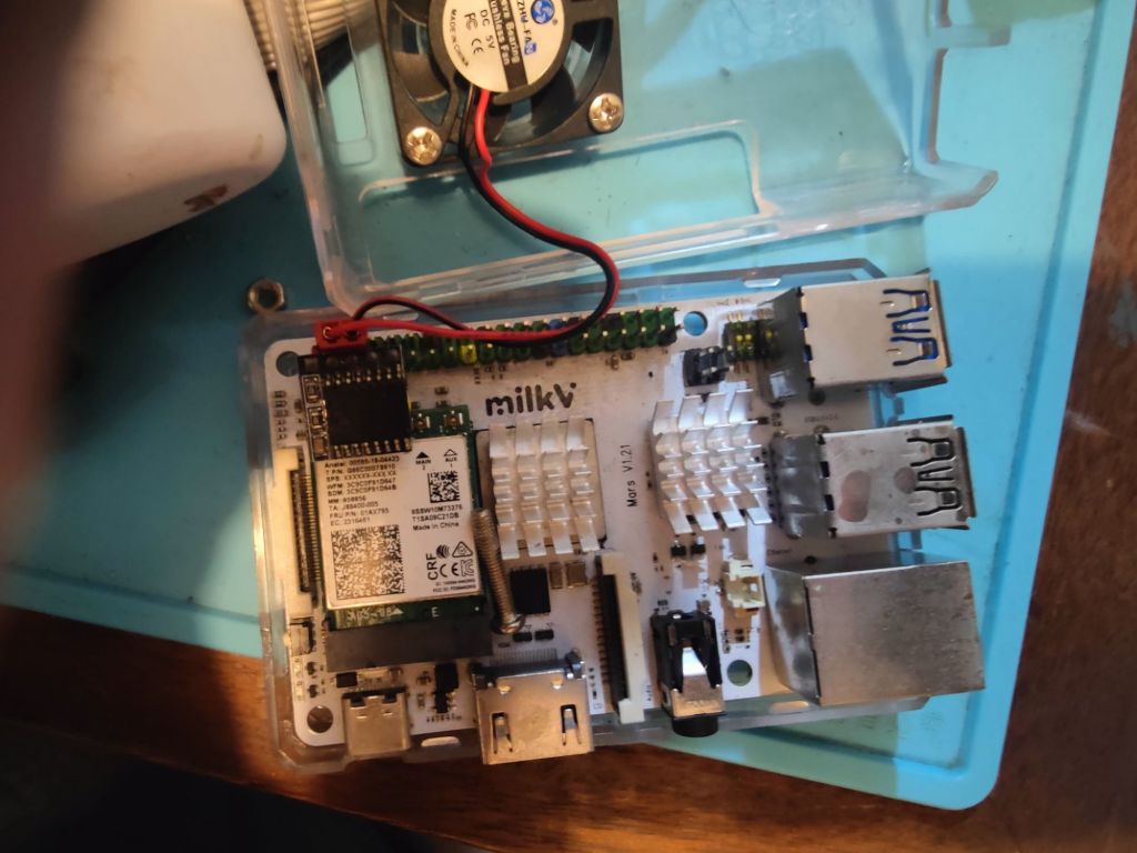 I also have a Milk-V Mars, which is in the Raspberry Pi form factor and seems to be roughly as powerful. I am having trouble with keeping the thing from overheating, given that the case I have found that best fits it (one originally intended for a Raspberry Pi 3), has the fan attachment in the wrong place to be able to cool the chips as effectively as possible. Those aluminium heatsinks are nowhere near enough to dissipate all the heat those chips produce when running at full power. I need better heatsinks and fans and probably a custom case designed for this if I’m going to use it seriously.